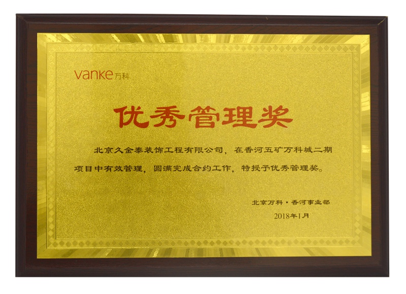 万科集团2018年度优秀管理奖